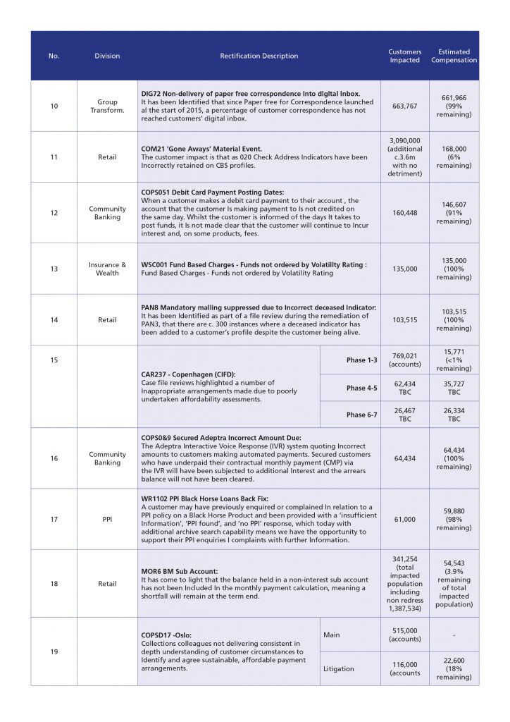 include customers who have made PPI claims.  The key remediations both past and present are set out in the tables below:
