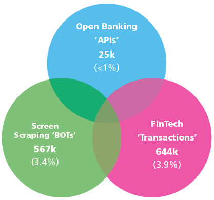 According to internal data seen by the union, 7% of active personal current account customers in LBG (see graphic below) use services including open banking APIs, Fintech transactions and screen scraping BOTs.