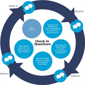 Like the Adobe system, there will be at least 4 ‘Check- ins’ and these will last between 30-60 minutes. According to the Bank no paperwork will need to be prepared for these meetings, either before or after, and there will be no outputs. All meetings will use the same five questions:
